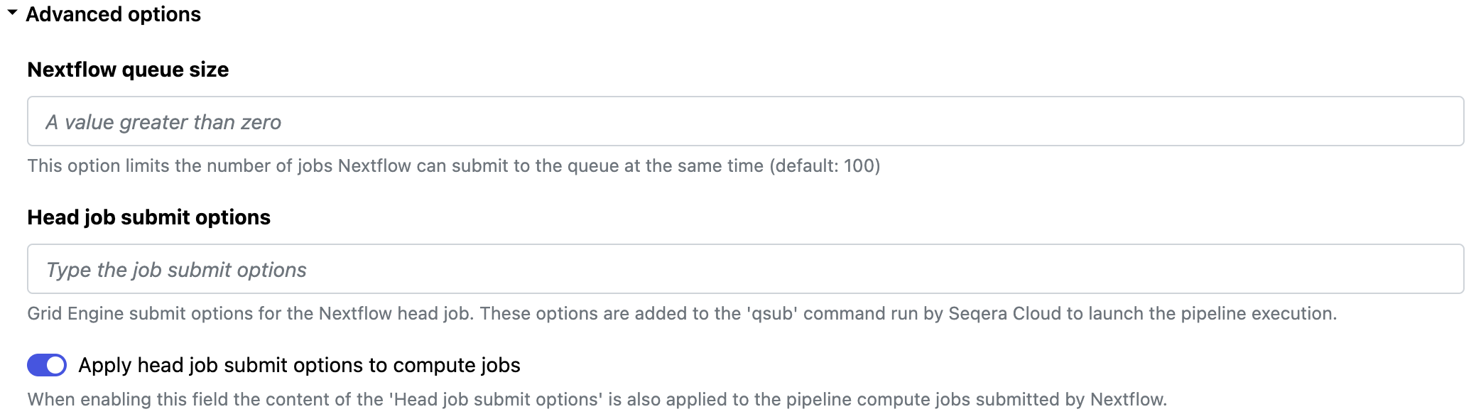 • The cluster queue used to run the Nextflow head job must be able to submit cluster jobs.